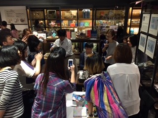 福田さんのワークショップはじまりました。 こちら、台湾出張組。 台北市の松山文化創意園区にある誠品書店で福田利之さんによる、ほぼ日手帳とマスキングテープをつかったワークショップがはじまりました。 まずは、福田先生からのごあいさつと実演を交えた説明を経て、スタート。 さっそくみなさん、思い思いにマスキングテープをちぎりはじめました。 それぞれのテーブルには、マスキングテープと福田さんが日本から持ってきた様々な土地の紙片たちが用意されています。 外国の新聞やお菓子のパッケージ、包装紙などの色とりどりの紙片は 「一見ゴミのように見えるかもしれませんが、ぼくにとってはたからものです。」と福田さん。 参加してくださっているみなさんの手帳がみるみるカラフルに彩られていきます。 2014/11/05 15:43 |