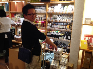 ほぼ日手帳「Base」 昨日のことになりますが、 「おらがジャム」や 「手かげんしないしょうがシロップ」 でお世話になっている、 サンクゼールさんのお店に行ってきました。 ほぼ日ストアの一部商品をサンクゼールさんの店舗で販売してくださることになったのでその準備です。 (詳しくはまたあらためて お知らせします) ‥‥と、ふと見るとサンクゼールの山川さんの肩に来年のほぼ日手帳「Base」が! わぁ、ありがとうございます。 「仕事道具がぜんぶまとまるので、 もう使っちゃってるんです。 ぼく、よく手帳をどこに置いたか わからなくなるんで ちょうどいいんですよ。 めちゃくちゃ気に入ってます! SDカードとか、バッテリーとか、 マーカーとか、iPhoneとか 仕事で使うものを みんな入れちゃってますね。 あと、千円札も入ってます」 このときはみんなで 「ほぼ日の商品を サンクゼールのお店に並べるなら こんな感じ?」 という棚の見本を作ったのですが、美しく並べていただいて、ジャムもやお茶も、それぞれいっそうおいしそうに見えました。 サンクゼールのみなさん、引き続きよろしくお願いいたしますー! 2014/11/13 12:18 |