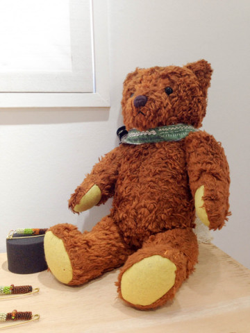 やってきた プチ・チェコ化している とめるショップ@TOBICHIにまたひとつ(ひとり?)新人が。 shinoさんコーナーのいちばん奥にいるこの子、樋口可南子さんが持ってきてくださったのです。 「プラハに撮影に行ったときに 出会ったテディベアなんですよ。 そのときの役名が『ちえこ』だったので この子も『ちえこ』ってつけたんです」 チェコグッズを並べるなら、いっしょに、ということで、あす(日曜日)いっぱい展示いたします。 ぼくはテディベアに詳しくないんですが、これは、ヴィンテージの、とっても状態がいいものだということが、あきらか! リボンは日本でつけたそうです。 これからいらっしゃるみなさま、あわせてごらんくださいねー! 2014/11/15 14:15 |