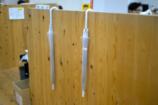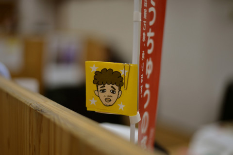 かさ 前からずっと気になっていたのですが、なぜ、ここに、狛犬さんのように、ビニールのかさが下がっているのでしょうか。 (ほかの席の仕切りには あまりものが下がっていない) なにかの暗示でしょうか。 「いっぽんは、僕のです」 いっぽんはじゃぶやなぎさんの。 「もういっぽんは、 おむかいの席の そうか、たまたまかさをかけるタイプの人がおむかいに座った、ということですね。 ただ、ただ、それだけのことですが、まあ、もうすぐ席替えもあることですし、記念にもうちょっとちゃんと撮っておこうっと。 あ! ああ! どうして、邪魔をするのか。 しかも、そんなポーズを撮っても 「使いづらい写真」になるだけじゃないか! うちゅうの窓口、 2014/11/17 20:19 |