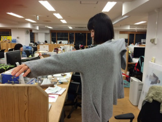 モニター報告 本日発売された CINE & TRAVELのカシミアのうち、ショールカーディガン〈TAUTOU(トトゥ)〉は、はじめてつくったデザインなので、10月くらいから で、どうですか? 「これ、いいです。 いちばん気に入ってるのは、 するっと着られるところです。 脱ぎ着がすごくスムーズです」 ほう、意外なポイントですね。 たぶん、ホールガーメントで編んでて、縫い目がないからですね。 「毎日のように着てますが、 毛玉もほとんど出ないし、 ヘタってこないです」 おお、カシミアにミックスしている 「ソロテックス」の効果ですね。 「とくにバッグが当たるとこって、 たくさん毛玉ができるけど、 これは、あんまりできません。 多少出てくるのを、手で取るくらい」 あー、それ、気になるからね。 「ほかにもありますが、 またこんど言います」 なんでいっぺんで言わへんねん。 なんでそっち向いたまんまやねん。 2014/12/17 17:12 |
