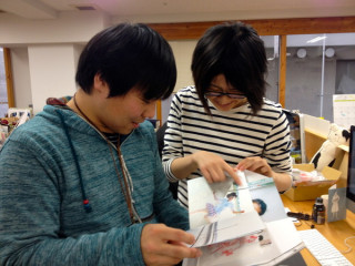 新しい写真集! 井伊百合子さんと轟木節子さん、ふたりのスタイリストさんといっしょにボーダーシャツをつくった 「ほぼ日ボーダーシャツ研究所」。 そのときにボーダーシャツについて語ってくださった写真家の川島小鳥さんの新しい写真集ができました! 話題になった『未来ちゃん』から3年ぶりの写真集で、すべて台湾で撮られたものだそうです。 さっそく、近くにいた 「え? これ、縦と横のページがあるよ!?」 そうなんです、縦のページと横のページが交互におさめられているんです。 わたしもはじめに見たとき、とってもびっくりしました。 ふたりは、びっくりしながらも終始ニコニコして写真集を眺めていました。 たまたま 「くまお」の入稿をしにあーちんにも。 あーちんは、 谷川俊太郎さんとの対談や 「くまお はじまりの本」で川島小鳥さんに写真を撮ってもらったことがある仲なんです。 あーちんも造本にびっくりしたあと、じっくりと写真に見入っていました。 明日、27日(土)に神楽坂にある「かもめブックス」でこのできたてホヤホヤの写真集の 「お誕生日会」を開催するそうです。 50冊だけ先行発売や制作エピソードのトークショーのほか、お誕生日会ならではのたのしいことがあるみたいですよー。 お時間があれば、ぜひ、遊びにいってみてくださいね。 ーーーーーーーーーーーーーーーーーーー 川島小鳥写真集 『明星』 誕生記念イベント日時:12月27日(土) 13〜16時会場:かもめブックス ワークショップスペース(店内奥) 住所:〒162-0805 東京都新宿区矢来町123 第一矢来ビル1階 マップはこちら くわしくは、こちらの かもめブックスさんのページをご覧ください。 ーーーーーーーーーーーーーーーーーーー 2014/12/26 17:02 |