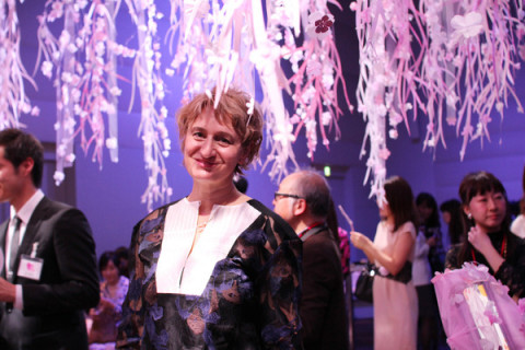銀座でお花見 先日予告していた、和紙で作った桜のディスプレーがすごい、SHISEIDO THE GINZAのイベント 「美と、花あそび。2015」のパーティーへうかがってきました。 このディスプレーを作ったフランス人アーティストのマリアンヌ・ゲリーさん (写真2枚目)はとても気さくで桜がご本人にもお似合いでした。 そして、この桜の和紙をつくった、日本で最も有名な紙の会社のひとつ、株式会社竹尾の竹尾稠社長に、紙についてちょっと教えていただいたり。 最後の桜吹雪、きれいだった〜。 細やかな花の表現は、実際に、近くで見ていただきたいなあ。 この、桜をイメージした紙のアートは、SHISEIDO THE GINZA 1階で5月19日まで、マリアンヌ・ゲリーさんが“桜の妖精”をイメージしたディスプレーとともに飾られます。 春だし♪SHISEIDO THE GINZAの1階はとても女性っぽい空間だし♪ちょっと新色の化粧品を試してみたり♪ たまにこういう女性っぽいことすると楽しいので、またやりましょうと お近くに行かれたら、ぜひのぞいてみてくださいね。 2015/03/20 20:02 |