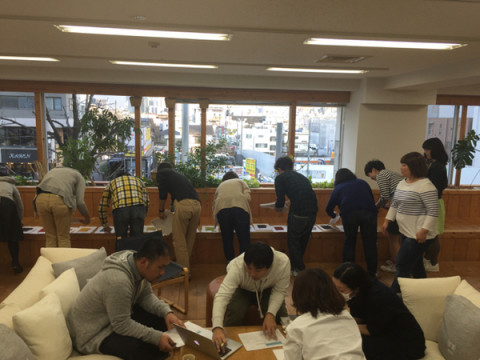 さまざまのこと。 それはきのうのことじゃった。 昼間縁側では、プリントアウトされたとあるものがならべられていた。 「すみませ〜ん、 てつだってくださ〜い」 と声がかかり、みんなで、プリントを1枚づつあつめて、資料をつくる、というようなことをしました。 こういうときに、さっと立ち上がって役に立つのが弊社の乗組員はかなり好きです。 そして、夜に。 これはなにをしているかというと、録画をしておいた、 同僚が出ているテレビ番組をみんなでみているところです。 私なども、同僚歴が長いので、テレビにでている彼をみるのはなんというか‥‥親戚の心持ちになってしまって、無理だったので、便乗しました。 そのようにして、きのうは縁側がだいぶ活躍していました。 2015/03/24 13:29 |