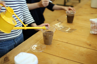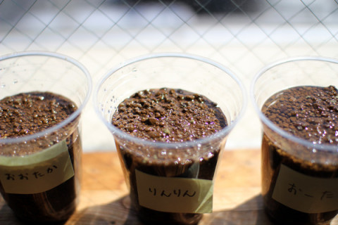 「種まき」しました。 きのうから、福島県産のコシヒカリを自宅で育てられる 「ちいさな田んぼキット」を販売してますがほんじつの東京・青山地方、たいへんに気持よく晴れていたのでわれわれ、たまらず、ひともふた足も先に、 「種まき」をしてみました。 (キットをお申し込みいただいたみなさんは もちろん、4月下旬以降に キットがお手元にとどいてからの種まきで じゅうぶんに間に合います、念のため) キットに入っているものと同じですがこのような育苗コップにコシヒカリの種を4〜5粒、土の表面から 「6〜7ミリ(種もみ2つぶん)」の深さに押しこみまして、お水をやります。 このまま日当たりの良いところに置いて、お水を切らさないようにします。 じゃっかん種まきのタイミングが早いのですがたぶん数日から1週間くらいでかわいい芽が土から顔を出すと思います。 これがですね‥‥おどろくほどかわいくて、嬉しいんです。 あー、たのしみだ。 ときどき、レポートしていきますね。 みなさんも、よろしかったらぜひ。 2015/03/26 12:09 |