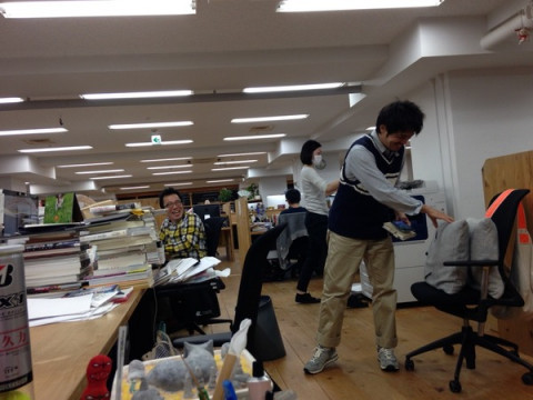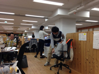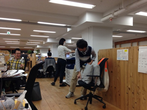 アクシデント! 先日のことなのですが。 わたしは、なんとなく横を向いて、 彼は、立っていて、座ろうとしたところでした。 はい、そこで、アクシデントです。 なんと、彼は、ゆっくりと、イスに座ろうとしていたのに、イスが、シューーーッとまるで意思を持っているかのように、後ろに移動したのです。 ということは、そうです。 彼は、一瞬、床に座りました。 そして、立ち上がり、意思を持ったイスを迎えに行きました。 隣の席の わたしも、笑いが止まりません。 すると、重い口を開いた奥野。 「さすがに、クッション2個は、 座れないっすね」 そうです。 座面をお得意のサンドイッチ用のクッション(forクッションおばけ)に陣取られていたため、自分のお尻が座るスペースがなかったのです。 なんてこった! 床に座る瞬間は、じーっと目があっていたのですが、ものすごいスローモーションだったー。 「あー、びっくりしたーー! すっごい目がびっくりしてましたよ!」 「じゃあ、びっくりしてたんでしょうね」 え!? でしょうね? あんなに目を見開いてたのに、びっくりしてなかったの? 無意識? どういうこと? ミスターミステリアスアクシデント奥野でした。 2015/04/07 19:32 |