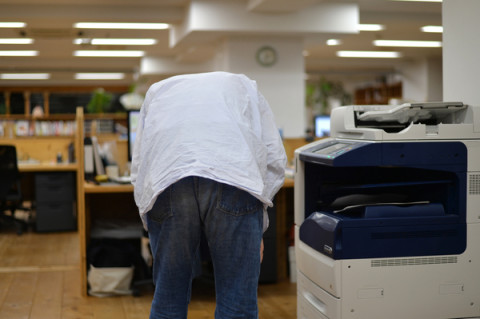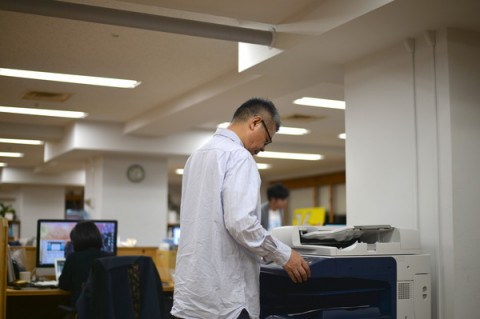 コピー社長 私の席の右後ろにコピー機があります。 それを見慣れぬ人が操作していたので思わず写真を撮ってしまいました。 社長が、コピーをしている。 しかも、何度も、拡大縮小等をくり返してしているようです。 うまくいきましたか? 「いや‥‥あんまり‥‥ うまくいかなかった」 私はしゃしゃり出て手助けをしようと思ったのですが、よく聞いてみると 「ふたつだったものを合体させて 縦位置のものを横位置にする」 という目標のようで、早々にお手上げして、得意そうな ピース。 2015/04/15 19:59 |