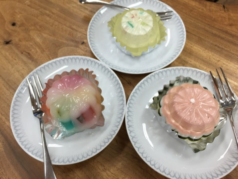 プライベイト活動 「ほぼ日」の食いしん坊3人組の カロリーメイツ 「ほぼ日」のコンテンツのために3人でチームを組んでいるわけではなく、ふだんも、おいしいものを取り寄せたり朝食や昼食に出かけていって3人で食べたりしています。 (というか、もともと 3人で食べ放題ビュッフェに あちこち行きはじめたことが 社内で「カロリーメイツ」とあだながつく きっかけになったのでした) 今日お取り寄せしましたのは、ゼリーです。 以前、福島の常磐道を通って 3人でテキスト中継した際に、定休日だったため食べ逃した 「ゼリーのイエ」というお店のものです。 取り寄せた代表者は、ゼリー&フルーツ好きの 黙っていたら12個入りをオーダーしてしまって、これを「3人で食べよう!」というのです。 恐ろしい。 それぞれ順番に食べたいものを指さし、お皿に取り分けます。 しかし、言うまでもなくカロリーメイツ名物公転食べをするので結局、全種類を味わうことができます。 ああ、おいしい。 でもだめだ。 ひとり3つまでにしておきました。 残った3つは社内のみなさんに‥‥。 (もしくは、 ゼリー好きのシブヤがばんごはんに‥‥) ゼリーはね なつかしいやら おとなっぽいやら (カロリーメイツ、食べものの念願は 必ず自分の力でかなえるの句) また、おいしいものを食べにいきたいです。 うまけりゃうれるべ市。を申し込んだみなさん、もうすぐ届きますよ〜。 2015/04/22 20:35 |