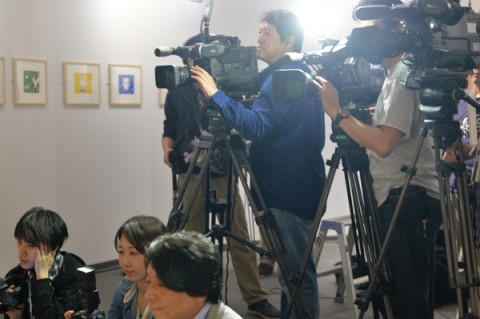 続・気仙沼で編んでもらったミッフィーちゃん2 たくさんのカメラが並ぶなか、 「ミッフィー・アートパレード お祝いセレモニー」 がはじまりました。 みなさん、ちょっと緊張の面持ちです。 ごあいさつのあと、田村さんが、ミッフィーにプレゼントをあげました。 気仙沼で編んでもってきた、オランダの花、チューリップです。 田村さんは、仮設住宅に咲いていたチューリップを見ながら編んだそうです。 チューリップをプレゼントする、ということを前もって聞いていた私は赤とか黄色かな? と思っていたのですが、この淡い色‥‥。 赤いカーディガンにはえます。 2015/05/01 13:21 |