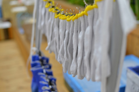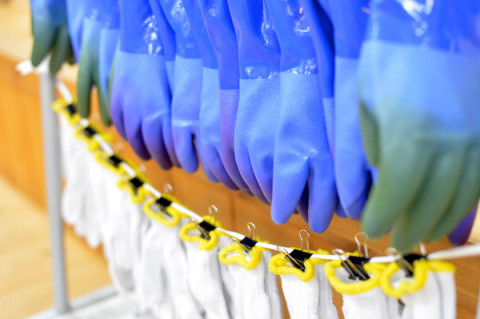 「ゴム手袋」と「軍手」がずらーっと干してあるんです。