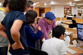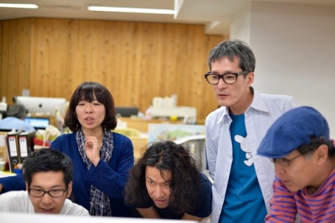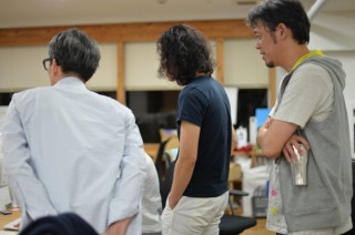 また、もめる 明日は 「吉本隆明の183講演」の更新があります。 明日の目次ページに出るバナーのデザインについて‥‥また、またまたまた、 もめています。 周囲のみんなを巻き込んでおおもめしております! 「明日の特集テーマにちなんだ書体を 使おうと思ったのですが、 なんだかハンパになってしまって」 「ハンパじゃないよ。 さっきのほうがよかったよ。 これじゃあ、カルタみたいだよ」 「思い切って明日の特集テーマの人の 顔をイラストでいれてみたらどう?」 「ぼく、前にその人の取材を したことがあるよ。 そのときの写真を使ったら?」 「ぼくはあんがい カルタバージョンも悪くないと思う」 どうする、どうなる、明日の吉本さんのバナーよ! 2015/06/04 21:17 |