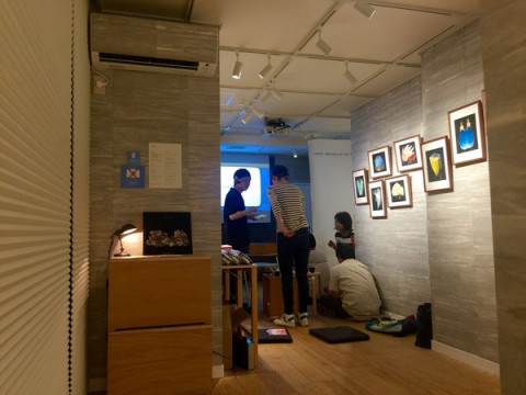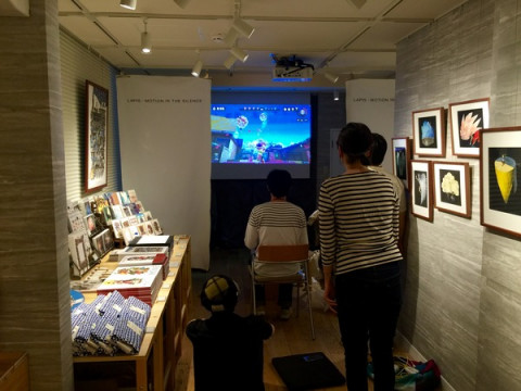 junaidaさんの原画展会場が! ああ、今日は取材もあったり遅れている原稿を書いたりしていたらすっかり遅くなってしまいました。 junaida(ジュナイダ)さんの原画展、初日の今日は本当にたくさんの人に来ていただきしずかに、大賑わいでした。 グッズも、みなさん、たくさん買っていってくださいました。 新作『LAPIS』にいたっては今日だけで、なんと50冊ちかく(!)も売れたそうです。すごいー。 時間も遅くなってしまったのですが初日がクローズした後、まだ、junaidaさんたちいるかなーとTOBICHI2を覗いてみると‥‥。 あ。いた。 スクリーンの前で、打ち合わせしている。 でも、やたら楽しそうだなあ。 TOBICHIチームの なんか宇宙的な不具合? いったい、何の相談をしているんだ‥‥? って、おもしろいと評判のイカしたゲームWii UのSplatoon(スプラトゥーン)をやってる! なにしてんのー。 でも、噂に違わず、おもしろいですこれ。 (やらせてもらいました) Wii U買おうかな‥‥。 ちなみにjunaidaさん、めちゃくちゃ上手。 (いまから3時間くらい前のできごとです) 2015/06/10 23:21 |