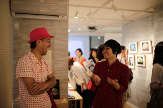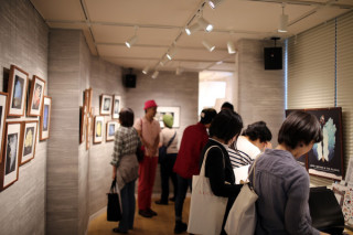 原画展会場に‥‥。 画家junaidaさんの原画展&アイテムたっぷりミュージアムショップの会場は2日目の本日も、たくさんのお客さまでしずかに賑わっております。 オリジナルのグッズも大好評で、200円の缶バッヂ、150円のポストカードからあれこれ選べるのでほんと、いろいろたのしいですよ。 ぜひ、お越しくださいね。 ‥‥あれ、なんだろう。 視界にピンクがちらつくなあ。 と思ったらパリで有名、ピンクで有名、 次々ひどい目にあうことで有名な、レ・ロマネスクのTOBIさんだ! はい、わざとらしくて、すみません。 junaidaさんが 「TOBIさんの大ファン」というので来ていただいたのです。 会場の片隅で、すぐに意気投合するTOBIさんとjunaidaさん。 junaidaさん最新作『LAPIS』の原画を 「これならステージでいけそう」 「紅白に呼ばれたらこっちかな」 ‥‥という「ステージ衣装目線」で鑑賞していたのは、あとにもさきにもTOBIさんだけでありましょう。 その他、会場にいた 「かわいい、ちいさいひと」にご利益のありそうな「念」を送ったり本物のフランス人であるTOBICHIの (TOBIさんが ニセモノのフランス人という意味では ありませんが) TOBICHI2に、ピンク色の風を吹かせて去って行かれました。 2015/06/11 16:03 |