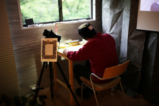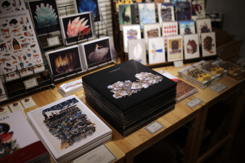 2日目も盛況でした。 junaidaさんの原画展&ショップは2日目が終了しました。 本日も、たくさんの人がjunaidaさんの絵を見に来てくれました。 本当に、ありがとうございました。 東京近郊での展覧会は3回めですが、junaidaさんは京都在住のため次回は、いつ、こちらのほうに来るか決まっていません。 ぜひ、この機会に見ていただくことをおすすめします。 また、インタビューでも話していますが最新作『LAPIS』は 「好きにつくりたかった」のでjunaidaさんご自身で出版しています。 そのため、ふつうの本の流通網に乗っていません。 つまり、現時点ではTOBICHI2でしか、売っていません。 (いずれ、junaidaさんのお店のサイトで ネット通販をはじめる予定とのこと) ですので、数に限りはあるのですが、気になっている方はぜひ、この機会にお求めくださいね。 どっさり持ってきていただいた画集も品薄になりつつありますがあす、ある程度の数が補充される予定。 最後に、junaidaさんが会場で製作中の作品、今日の進み具合は、こんな感じ。 最終日の14日(日)までに 「みごと完成!」となるかなー? こちらも、楽しみにしましょう。 2015/06/11 20:26 |