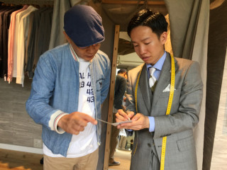 ついに採寸! 束の間、採寸を待つお客さんがいない状態になりました。 つまり、チャンス! 「さ、採寸してもらえますでしょうか」 「もちろん、こちらへどうぞ」と森谷さん。 やりました、採寸していただけます! 軽く、緊張する山下に、森谷さんは、すっ、すっとメジャーをあてていきます。 なんでしょう、この大切に扱われている感覚は。 「西洋の昔話で王様がさ、 仕立て屋さんに採寸されている 場面があるじゃない? あんな気分ですよ」と言ったら、御手洗 「ちょっと何言ってるのかわかんないですね」 と真顔で言いました。 ともあれ、うれしいです。 ほんじつの大目的、達成! はあー、これがぼくの採寸カード‥‥。 さいふに入れて持ち歩きます! 目的は達成しましたが、まだうろうろします。 2015/06/21 14:23 |