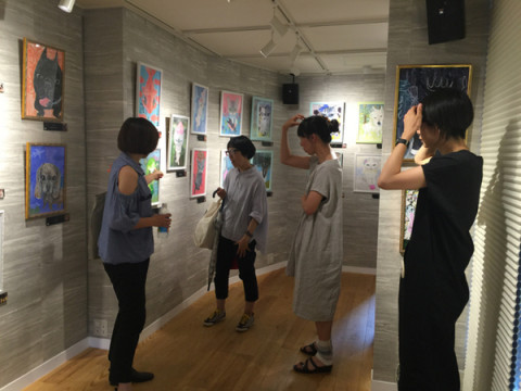 TOBICHI2の2Fは窓から、青山墓地がばっちり見えるし、このグレーの壁が妙に古墳の石室感がある、と、スソさん。