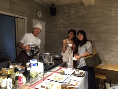 あぁ、おいしかった 斉吉商店の看板商品 「金のさんま」「海鮮丼」はもちろん、あたためるだけでおいしいスープやてがるに「つみれ汁」がつくれるさんまのつくね、牡蠣をまるごと使ったオイスターソース、そのオイスターソースを使ったドレッシングなどなどなど、和枝さん選りすぐりのものが本日のTOBICHI2には並びました。 気仙沼でどの家庭にも常備されているなまり節をはじめ、 「どうやって食べるものなのかな?」 というものは、和枝さんが調理例を紹介しながらどんどん試食をさせてくれます。 おしゃべりも、ほんとにたのしい。 いいにおいがたちこめていて、店番をしていた私たちのおなかもキュル〜と鳴りました。 あしたも、斉吉商店さんと三陸のおいしいものをたくさんご紹介したいと思っています。 「あしたも来るよー!」 と声をかけてくださったお客さまもいらっしゃいました。 しかも、いつも気仙沼にいる 姉妹がホントに似てました。 ほかほかのごはんとおいしい和枝さんのお料理とで、明日明後日と、お待ちしていま〜す。 2015/07/25 21:38 |