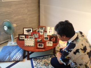 是枝さんも! わぁー! なんと!! 是枝監督がTOBICHIに! 瀧本さんは、是枝監督作品『そして父になる』と『海街diary』で撮影監督をつとめられています。 是枝監督は写真ひとつひとつを瀧本さんといっしょに、じっくり、ゆっくり、ご覧になっていました。 おふたりは、展示された写真を見ながらどんなことを思い出しているのかなぁ…。 帰りにしょうがシロップのかき氷をパクリ。 カメラを向けさせていただいたらすぐにこの顔をしてくれました。 是枝さん、ご協力ありがとうございます。 お帰りの際にはTOBICHIの常設ショップでしょうがシロップなどをお買い求めくださいました。 TOBICHIを満喫していただき、 うれしいです。 ありがとうございました! 2015/08/01 16:39 |