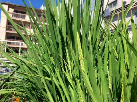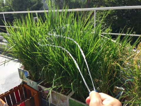 そろそろ、出穂? 連日、あついですね。 会社のベランダで育てている稲くんたちも、ものすごーく水を飲む時期に突入。 朝、たっぷりあげるんですが、あまりに暑い日は、気になってちょっと覗いて水を足したりとか。 この「ちいさな田んぼキット」を育ててくださっている人は全国津々浦々に、数百人という数でいらっしゃるのですがみなさんのおうちの稲くんたちも、そろそろ出穂 (しゅっすい/穂が出ること)してくるころでしょうか? ぼくらの稲くんたちは、ところどころ、穂が顔を出しています。 これから8月いっぱいは、生長のラストスパートの時期ですからぜひぜひ、お水をたっぷりあげてくださいね。 夏が過ぎて秋になればうれしい「収穫」が、待っていますよ! しかし、あっついけど気持ちいいなー。 なにせ、この空の色! 2015/08/05 15:15 |