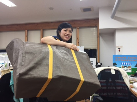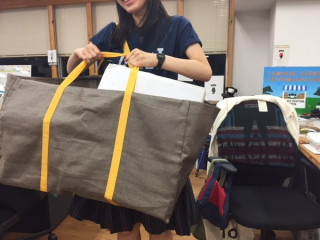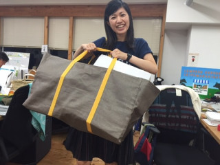 in とってもおおきなふくろ このごろ「ほぼ日手帳」のチームでは、たくさんの手帳カバーをまとめて持ち運ぶことが多いのですが、今日はシブヤがちょうど 「とってもおおきなふくろ」に手帳を入れて運んでいて、それが、すごーく使いやすそうでした。 「これ、大きくてほんとべんりですよー。 たぶん手帳カバーなら82種類、 ぜんぶはいる気がします」 それ、上はどうなってんの? 「上は大きくぱかっと開くんですが、 今は2016年版の手帳を入れてあるので ひみつですー。 ぱかっと開きます。ぱかっと!」 「とってもおおきなふくろ」 夏休み、レジャーに出かけるときなどにもよさそうな大きさでした。 (ほんとに、かなりでっかいです) あと、押し入れの整理とかにもべんりそう‥‥。 大きくて使い勝手のいいふくろを探していたかたには、これ、かなりおすすめです。 よければチェックしてみてくださいねー。 2015/08/14 19:13 |