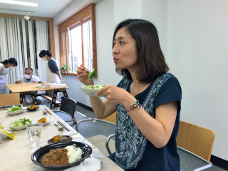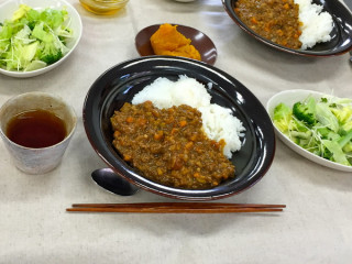 はごたえキーマカレー 今日は火曜、給食の日です。 メニューはキーマカレーです。 このキーマカレー、いろんな具がみじん切りになって入っていて、しかもそれが固めにしあがっていて、野菜のはごたえがたのしいのです。 しかもおいしい。 何が入ってるのかはあんまりよくわからない。 きっとれんこんは入ってます。 すごいわー、このキーマカレー。 みんなだいすきです。 で、ほんじつ特筆すべきは (写真いちばん下) お砂糖、梅、梅酢、オリーブオイルでできているそうです。 レタス+ブロッコリー+かいわれのサラダをこのドレッシングで、みんなで 「おいしい!」「おいしい!」 言いながら、いただきました。 2015/08/18 14:34 |