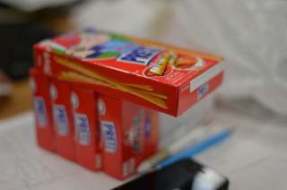「これがうまくいったら、俺は今日 よろこびとともに、事務所のみなさんへ このプリッツを放出します」