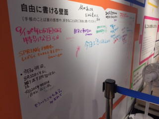 渋谷ロフトの「手帳のことば展」にお越しいただいたかたに感想や好きなことばを書いていただこうと用意した壁面のフリースペースも、少しずつ賑やかになってきました。