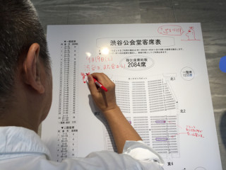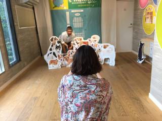 動くガミガミ ミグノン写真展のフォトスポットで友森さんに写真を撮ってもらっていて微笑ましかったです。 その後、 「このパネルの位置は もうちょっと下にしたほうが いいんじゃないか」 とか 「せっかく渋谷公会堂の いぬねこなかまフェスの チケットを売ってるんだから 買いやすいようにご案内しなきゃ」 とか 「このパネルに矢印をつけるように」 とか、つぎつぎとアドバイスをくれました。 本人曰く「動くガミガミ」だそうです。 ありがたいガミガミです。 ガミガミさんはご自分で渋谷公会堂のチケットボードに手描きの案内を書き込んで行かれました。 このあと、お越しになる方はぜひガミガミさんのカキコミもごらんいただければと思います。 2015/09/03 16:36 |