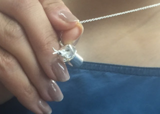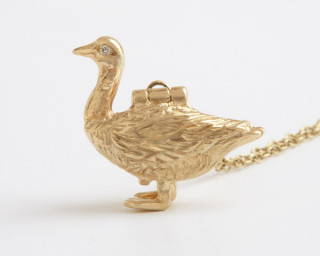 さっそく付けてます 「みてみて届いたの〜!」 ふりかえると、 イセキアヤコさん監修のペンダントをつけた 「つくっている段階から 何度もみてるけど、 やっぱり届くとうれしいね〜」 傾けるとうさぎがぴょこんと出てくるこのペンダント、社内でも人気で、 いいな〜。 とても似合ってるよ〜〜! こちらのうさぎ(マジシャンの帽子)は完売となりましたが、 がちょう(がちょうと黄金の卵)のほうはまだわずかに在庫があります。 がちょうのおなかを開けると、金の卵がでてくるという仕掛け付きで、こちらもとっても人気です。 どうぞおはやめに〜! 2015/09/08 12:47 |