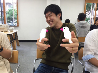 B-BOY 今日は給食の日。 おいしいコロッケをいただきながら、他愛もない会話をたのしんでいました。 ふいに、B-BOYの話になり、みんなでB-BOYの手をいろいろやっていました。 (EASTとWESTの手のちがいとか) そこへ 「ぼくはEASTとWESTどっちかなぁ」 と言いながら、やってくれた手が、なんともふんわりしてて、ものすごく奇妙だったので、 「なにだそれ!?」 と一斉にツッコミを入れてしまいました。 「え、それは、何、文鳥?」 という ワハハハハハ。 たしかに、文鳥を指に乗せてる感じになってる! かわいいかわいい。 せっかくなので、Bを描いておこう。 BはBでも、BUNCHOボーイな ごちそうさまでしたー! 2015/09/15 13:40 |