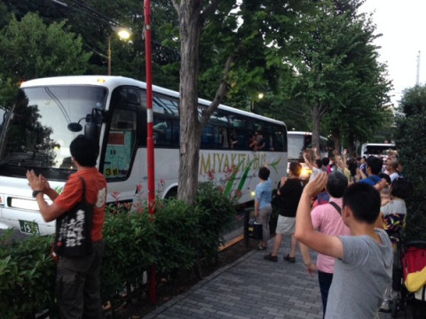 目黒のさんま祭 目黒のさんま祭が無事終了しました。 5000匹の焼きさんまと2000杯のすり身汁をご来場のみなさんに、食べてもらえました。 テキスト中継はいかがでしたか? 今回初めて焼き手として参加した 楽しかったですね! 最後の懇親会は、今年も大盛り上がりで幕を閉じました。 気仙沼に帰るバスを見送って、さんま祭は終了しました。 気仙沼チームは、明日、片付けもありますが、とりあえず今日は、ゆっくり休んでください! 参加すると、また次も参加したいなと思います。 やっぱり楽しいからです。 また来年! と手を振りながら、気仙沼チームと東京チームは別れました。 また来年もきっと楽しいと思います。 今年参加してくださったみなさまも、楽しかったですか? また来年も、ぜひ! 2015/09/20 18:45 |