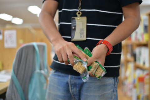 続おすすめ劇場 「ごま食べます〜? うひゃひゃ」 きたきたきたきた、また誰かきた! その、マラカスのように持っているお菓子は? 「ごまですよ、ごま〜」 あっ、それは休暇中に行ってきた ギリシャのおみやげ(の残り)! あんがいおいしかった、ごままぶしのお菓子ですね。 「食べてみてください、 ぜひ、いま〜。うひゃ」 もう私はとろけるチョコクッキーも食べたしおなかがいっぱいですよ‥‥カリッ。 ん? すごい。 ごままぶし菓子じゃなくて、全体が、ごまだった! あまっ‥‥そして、しぶっ‥‥!! ギリシャがこんなにごま文化にまぶっているなんて。 恐るべし。 2015/09/30 19:24 |