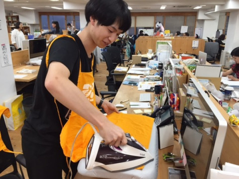 晴れ予定。 いよいよ明日にせまった 「世田谷パン祭り2015」。 さきほど、事務局のかたから 「明日は晴れの日用の レイアウトでいくことに決まりました」 というご連絡をいただきました。 わー、うれしい! 天気予報を見てみても、最高気温は28度、降水確率0パーセント。 お祭りにはぴったりのいい秋晴れの日になりそうです。 みんながいろんな準備をしていますが、タカヤはただいまスタッフ用のエプロンをアイロン中。 「もうすぐ終わります。 パン祭り、たのしみです!」 ね、たのしみだねーー。 ほぼ日ブースには、こちらのオレンジ色のエプロンをつけた乗組員たちが立っていますので、ブースを見つけるときの参考にしてみてください。 ちなみにほぼ日ブースでは今回が初お披露目。 新ジャムの「ママレードカルテット」の試食をしていただくことができます。 (気に入ったらお求めもできます) お越しの際にはぜひぜひ、味をみていってくださいねー。 2015/10/02 17:14 |