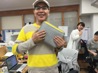 はやり? なの? 本日、 持っている傘、アイホンケース、そして、セーターまで同じ色合いです。 そして、思い出しましたよ! 「ほぼ日手帳2016」にも 同じ色の組み合わせの手帳があったことを! 私は来年の手帳はこれにしていたんでした。 わ〜わ〜すごいー、セーターとなじんでるよー。 と、笑っていたら、 「あ! もぎさんのかぶってる帽子も この色の組合せだよ!」 あ! ほんとだ! グレーときいろだ〜〜。 ちなみに、この帽子は、スソアキコさんの作品です。 2015/10/02 17:51 |