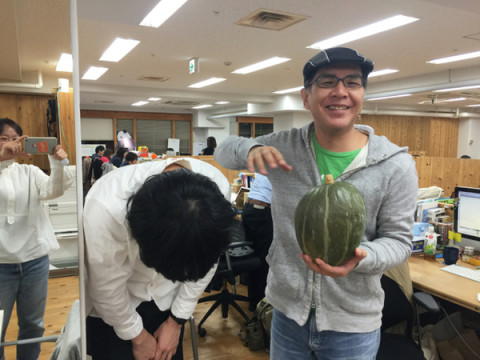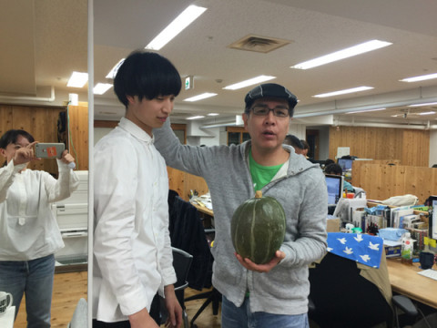 かぼちゃ来たる。 かぼちゃがとどきました。 かぼちゃなので、当然、弊社のものまね四天王のうちの一人、 吉岡秀隆役は、アルバイトの そして、次に繰り出すは、おもしろい形のかぼちゃを握って、早打ちガンマンです。 先日、はじめてヨーグルトをたべた 「すっごい、いやなんですけど。」 といいながら、めちゃめちゃキメ顔を作ってくれました。 すばらしい! 見習ってまいりたいとおもいます。 で、このかぼちゃなどはどこからとどけていただいたかというと、 「『滝を見にいく』 を見にいく。」でお世話になりました、じゅんじゅんさん。 つまりは、主演女優の根岸遥子さんです。 ありがとうございます! 近日中に弊社の料理番長の そうそう、『滝を見にいく』をまだみたことが無い方は、 すでにDVDになっていますので、 ぜひごらんくださいませ〜! 2015/10/05 18:27 |