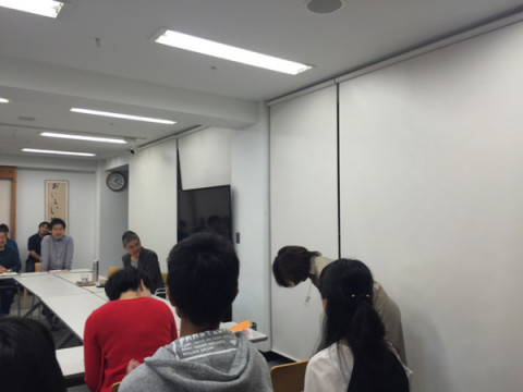 予告。 水曜日のお昼は、 「ほぼ日」の乗組員が一同にあつまって、ミーティングをする時間です。 なので、今日はじめて出社というような新しい乗組員が増えるのは、水曜日であることもよくあります。 キリの良い日というよりも、水曜日。 今日は、 「糸井重里の秘書役」として初出社のくらもちさんが挨拶をしてくれたのでした。 わたくしのカメラの起動がですね、もっさりしていたものですから、なんともまあ‥‥中途半端なことでたいへん恐縮です。 きっと、だれか別の機会にくらもちさんのスクープ写真を投稿してくれるはずです。 以上、予告編となりました投稿でございます。 2015/10/07 15:55 |