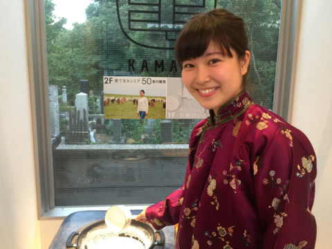 ほっとみるく。 秋も深まり肌寒くなってきました。 そんな本日の南青山、 TOBICHIに訪れてくださったお客様が、入り口でお配りしている 「ウェルカム・ホットミルク」をよろこんでくださっています。 「ん? なにこれおいしい」と ふつうの牛乳を泡立てながら竈でゆっくりあたためているだけなのですが、モンゴルでよく飲まれているこのホットミルクは、砂糖も入れないのにほんのり甘くて、空気を含んでいるからでしょうかなんだかまろやかなんです。 たまたま1階で開催している 「白磁」のイメージにもぴったり。 昨日までは経理 モンゴルの衣装を着て。 おお、似合う似合う。 「TOBICHIのアルバイトは ほんとにいろいろ体験できます(笑)」 昨日と今日で、大きくムードが変わりましたが内容はどちらも同じホットミルク。 連日15時から、月曜日まで各日ご用意した牛乳がなくなるまでふるまっていますのでよろしければお運びを。 あしたは誰があっためるのかなー? 2015/10/10 17:48 |