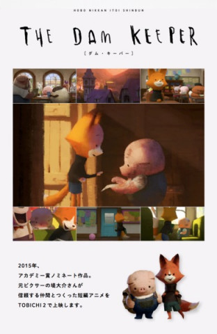 15日(木)から! 今年のアカデミー賞、 「短編アニメーション部門」にノミネートされた堤大介監督の短編アニメーション『ダム・キーパー』を青山のTOBICHI2で上映します。 会期はあさって15日(木)から20日(火)まで。 「18分」の作品なので、17日&18日の土曜日曜以外は 「11時・12時・13時・14時・15時・ 16時・17時・18時」 に、上映をスタートいたします。 (17日には堤さんのトークショー、 18日には 堤さんの絵のワークショップがあるため 12時・13時・14時の回はお休みです。 代わりに「19時の回」を設けています。 なお、トークショー&ワークショップの 募集は締め切りました) 『ダム・キーパー』って 「ああ、観てよかったなあ‥‥」と思えるとってもいい作品なんですが、もったいないことに現時点では、その「日本語字幕版」を観ることができないのです。 なので、みなさん、これはたいへん貴重な機会ですよ。 ぜひぜひ、足をお運びくださいね。 整理券のことなど、詳しいことは 『ダム・キーパー』のページでご確認を。 あ、ポストカードやマスキングテープなど気軽に買えるグッズから映画のシーンのシルクスクリーンプリントや 「ジークレー」と呼ばれるアート作品クオリティのプリントなども併設の『ダム・キーパー』グッズショップで販売いたしまーす。 2015/10/13 13:17 |