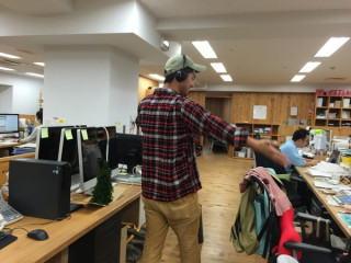 ヘッドフォンの謎 これはデザイナーの 彼はたいてい、ぼうしとヘッドフォンを身につけています。 私も、自席ではPCにつないだヘッドフォンを頭にかぶせて音楽などを聞きながら作業することはございます。 しかし、彼はこのようにちょっと別室に行くときなどもヘッドフォンを装着したまま歩くのです。 なんなの? と思っていましたが、謎が解けました。 彼は、PCの音源を聞いておらず、自席にいるときもポッケに入ったiPodにヘッドフォン端子を刺し音楽を聞いていたのです。 画期的。 そう思ったのは私だけ‥‥ですよね。 いやぁ、世代差? 2015/10/14 17:10 |