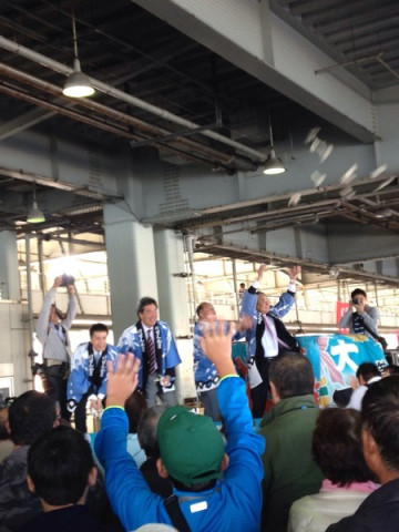 もとの魚市場 産業まつり&市場で朝めし。が終了しました! 会場はすみやかに片付けられ、魚市場はいつもの魚市場に戻りました。 もう、明日の朝にはここに水揚げされた魚が並びます。 たくさんのお客さんで賑わったお祭りはたくさんの人が関わって、生み出されたものでした。 私は、お買い物をしてもらえる抽選券を周りのみなさんから譲り受け、3回福引きをやりました。 結果、ふかひれスープと冷凍カツオとイカをゲットしました。 (さすがに当たりすぎたので、お裾分けしました) これ‥‥お得すぎないですか? でもこれだけじゃないんです。 日本一長い海苔鉄火巻きコーナーに参加すれば無料で鉄火巻きがもらえ、無料配布のお土産もあり、 「餅まき」もあり、お店では試食、試飲はあたりまえで、出血大サービスの価格で、いろんな商品が購入できました。 朝めしセットだって600円で、お刺身をつけても1000円でおつりがきます。 (ちなみに朝めし前売り券は500円!) どうして気仙沼のお祭りは、こんなに景気良く 「ふるまう」のか。やはりそれは、 「もてなしたい」という気持ちの強さと、 「せっかくきてくれたお客様を喜ばせたい」 という気持ちからだと思います。 私は市場で朝めし。セットのすり身汁のコーナーにおりましたが、 「お客さんがおいしかったって言ってたよ」 という声だけで、やる気がでて、なんだか自分もうれしくなりました。 きっとこのお祭りに関わっている人たちも同じで、お客さんからの 「おいしかった」「楽しかった」の声が嬉しくて、こういうお祭りをずっと続けてきたのだと思います。 私もあしたからはいつもの仕事です。 でも「今日は良かったな」 という気持ちを引き継いでむかえる、 「いつもの仕事」は、結構良いものだと、教えてもらったような気がします。 2015/10/18 20:55 |