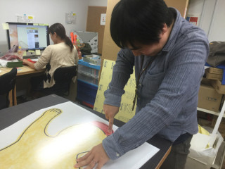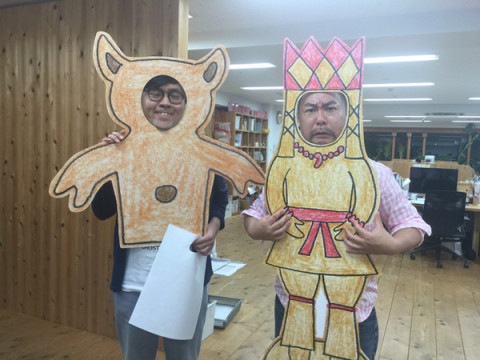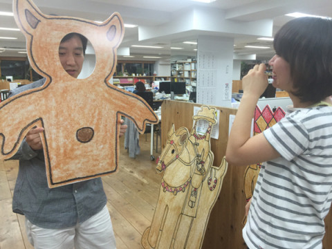 埴輪顔出し看板。 さて、シオリさんも紹介してくれていましたが、22日の木曜日からTOBICHI2では、 「スソアキコの古墳と山高帽展」がはじまる予定です。 ただいま、1Fにオープンする 「スタジオ828(はにわ)」の準備の真っ盛りです。 こちらでは、はにわになれる顔出し看板を各種ご用意しております。 その場でお写真を撮影し、プリントアウトを2枚いたします。 1枚はお持ち帰り用、1枚は、特設古墳ボードにはりつけることができます。 貼り付けると同時に 「はにわ大賞」にエントリー。 ベストはにわにかがやいた方には、スソさんの山高帽をプレゼントいたします。 ふるって、顔出し看板しにきてください! ちょっと3枚目は、たいへんキャラの濃い乗組員に顔をだしてもらってしまいました。 あ、いかん! 山高帽もかわいいのに、ついつい、古代のほうで盛り上がってしまう。 明日は、帽子のご紹介をいたします! 2015/10/19 20:27 |