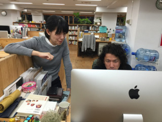 よろず相談所にくる人々。 わたしの前の席の たいがいが、ものすごく困ってる状況の人々です。 ページをつくっていて、うまいこといかなかったり、うまいことうごかなかったり、なにかページ制作でわからないことがあった場合のよろず相談所なのです。 どんなに忙しくても、相談にのり、解決。 解決もし、解説もする。 学校の先生もやっているので、きっとわかりやすいのであろうな、と、思っているのです。 宇宙部の会話は宇宙語でわからないですが、デザイナーさんたちの会話も、それはそれで、さっぱりわかりません。 2015/10/21 18:46 |