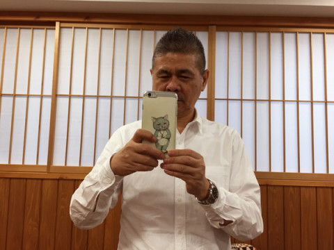 社長の電話のうしろには、ヒグチユウコさんのかわいいねこちゃんがいます。