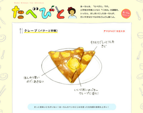 トレンディガール・あーちん! 毎週月曜日に、じぶんがたべておいしいと思ったたべものを、リアルでカラフルな絵で紹介してくれている、 「たべびと」のあーちん。 毎回「たべもの愛」にあふれているイラストとひとことコメントで、世の大勢のおいしいもの好きから共感を得ている、そのあーちんが、このたび、 日経トレンディネット「トレンド・スクラップ」 というコーナーで、テレビ東京の松丸アナウンサーにインタビューされました! コーナーのサブタイトルは、 「未来のトレンドパーソン編」。 絵を描き始めたころのことから、これから先のじぶんのことまで、たっぷりインタビューされています。 ほんの2年前、「くまお」を描いてたおかっぱ頭だった、小学生のあーちんが 放課後に谷川俊太郎さんに会いに行ったのが、なんだか、遠い昔のように思えるから不思議です。 現在の、じゃなくて、未来のトレンドパーソンなんだよね。 将来、どんな、おねえさんになるのかなあ。 今から、たのしみです! 2015/10/21 20:53 |
