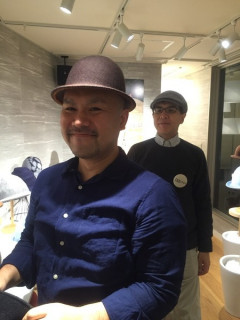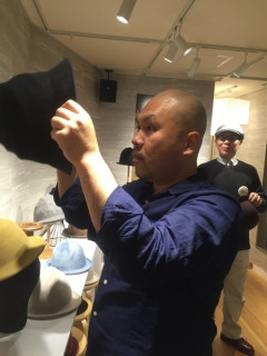 帽子展をやっている2階にあがったとたん、山下が「あ、かぶらせがいのある人がきた!」と言ってうれしそうに、かたっぱしからフィッティングさせています。
