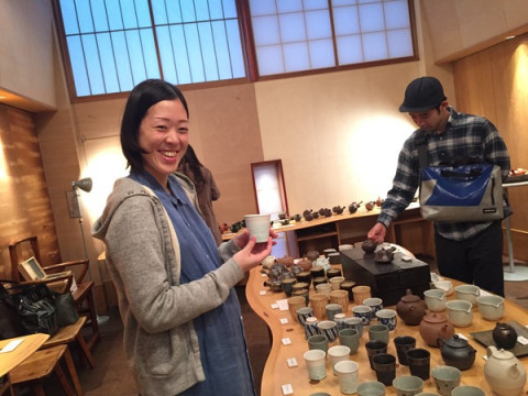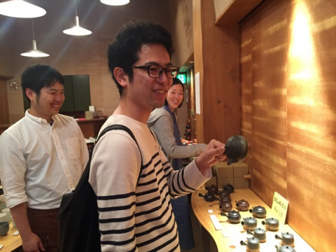きゅうす市! いつも「ほぼ日のにほん茶」のためにおいしいお茶を仕入れてくださっているうおがし銘茶さんが本日から「きゅうす市」を開いていると知り、行ってきました。 以前、急須のえらびかたコンテンツでお世話になった店長の樋口さんが全国各地からあつめたとっておきの急須が5階のスペースいっぱいに並べられています。 びっくりしたのは 「左利き用」の急須があったこと。 左手で持つ急須は、世の中になかなかないらしく、職人さんにお願いして、とくべつに作ってもらったそうです。 左利きの 「これは、左利きの と言っていました。 「私どもにとっても、左手用の急須があると、 両手にそれぞれ 急須を持っていれられるから、 2種類のお茶を同時に お客さまに出したいときに 便利なんですよ。 ちょっと難しいんですけどね」 と樋口さん。 急須だけでなく、湯冷ましや湯のみもたくさんあります。 2階の喫茶室では好きなお茶と、お茶請けのお菓子のセットが500円でいただけるのですが、これがまたいいんです。 自分で急須を持ってお茶をいれる形式なので、急須えらびの参考になるうえ、お店の人に、おいしいお茶のいれかたを気軽に教わることもできます。 おかわりのお湯もいただけるので、2煎目、3煎目とたのしみながら、ゆっくりと時間を過ごすことができてとてもおすすめです。 それにしても私、きのうの南伸坊さんの 昭和なねこ展といい、今週は秋らしいのんびりした時間を満喫できてるなぁ。 うれしいです。 きゅうす市は、本日から24日(土)まで開催されています。 場所は、築地駅からすぐです。 急須に興味がある方、おいしいお茶が飲みたい方は、ぜひぜひ行ってみてくださいね。 ほんとに、オススメです! ーーーーーーーーー きゅうす市 10月22〜24日10:00〜17:00 うおがし銘茶 築地新店 (茶の実倶楽部5階) 東京都中央区築地2-11-12 MAPはこちら ※2階の喫茶室の営業時間は12:00〜16:00(L.O)です。 ーーーーーーーーーーーーーー 2015/10/22 21:40 |