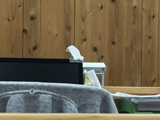 文鳥 那須に出かけているチームがいたり、 古墳と山高帽展を開催しているチームがいたりで、オフィスに人が少ない、しずかな金曜日です。 私の席からは経理チームのシマが見渡せるのですが、ここもちょうどMTGみたいで、誰もいません。 視界には、鳥が1匹。 白い鳥です。 http://www.1101.com/pl/seisakuchu2007/statuses/204415" target="_blank">このときの、白い文鳥。 給食を食べながら 「B-BOY」の手を真似した 「それ、文鳥ですか?」 と 私はこの一件以来、 ときどき自分でも文鳥ポーズをして思い出し笑いしているし、 をみかけるたびに文鳥ポーズをやって、とねだってしまいます。 毎日やってもらっても飽きないので相当、自分のツボに入ったんだと思います。 金曜ということもあって、つい、そんなどうでもいいことを書いてしまいました。 2015/10/23 17:44 |