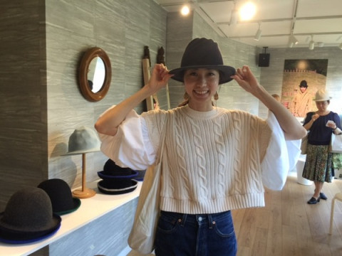 盛況でございます。 TOBICHI2で10月26日(月曜日)まで開催中の帽子作家のスソアキコさんの 「古墳と山高帽」展、きょうもお客様が2Fで帽子をぬいだりかぶったり、1Fでははにわの顔出し看板ではにわになったり人間にもどったり。 そうそう、スソさんの帽子のサイズふつうのお店よりも幅がひろいのです。 54センチのとてもちいさいサイズから、60センチの大きめのサイズもございます。 ふつうのお店ではかぶれる帽子がなかった、という方ももしかしたら、サイズがあるかもです! ぜひ、試着しにきてくださいね。 2015/10/24 14:19 |