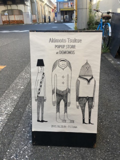 ポップアップショップ 「大きいほうと小さいほう」というマンガを不定期で連載している秋元机さん。 ただいまポップアップストアを開催中ということで、遊びに行ってきました! 店内に入ると壁一面にポスターが貼ってあったりiPhoneケースやZINE(小冊子)が並んでいたり、秋元さんのグッズがいっぱい。 た、たのしい……! 今回のショップに合わせて、新作のポスターを数種類描き下ろされたそうです。 ううーん、新作ポスターもすてきなのですが、この白い茶缶たちもいいなぁ……! さんざん迷ったあげく、四角い茶缶を持ち帰ることにしました。 さぁ、なにを入れようかなぁー。 秋元さんのグッズは定期的に販売している場所はいまのところありませんので、お近くの方は、この機会に足を運んでみてください。 10月31(土)、11月1日(日)には秋元さんが在廊されていますよー。 ーーーーーーーーーーーーーーーーー Akiomoto TsukuePOPUP STORE at DEMONOS 10月23日(金)〜11月1日(日) 平日 15:00〜20:00 土日祝 12:00〜20:00 場所:DEMONOS東京都台東区浅草橋4-5-4 斉丸浅草橋ビル2F*秋葉原駅、浅草橋駅、 どちらからでも徒歩10分圏内 くわしくは こちらのページをご覧ください。 ーーーーーーーーーーーーーーーーー 2015/10/25 18:43 |