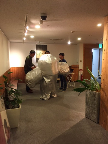 先日気仙沼で突然巨大化したシジュちゃんですが、今日突然青山の事務所に現れました!